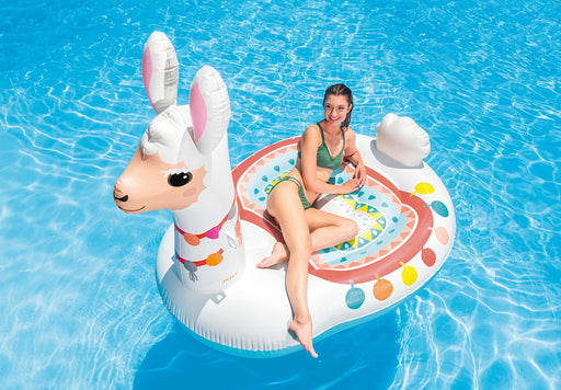 Description Have fun this summer and enjoy hours on the water with the Intex Mega Llama Island. It is built with durable 14ga vinyl, includes 2 hea...