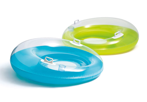 Description Have fun splashing around the pool with the Intex Transparent Rings. This fun 24in swim ring is a perfect swim ring for family and frie...